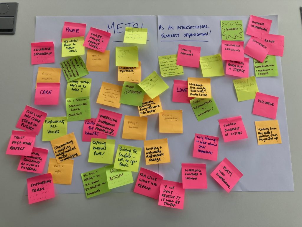 We could go on and on, and when we brought this question back to a staff meeting, our discussions on this took over the agenda. As we said, it’s big. We’ve started to unravel some of the conversations and provocations to begin to think about how we can turn our post-it note ideas into an intersectional feminist framework for Metal. Off the back of International Women’s Day we thought we’d share some of where we’re at so far…